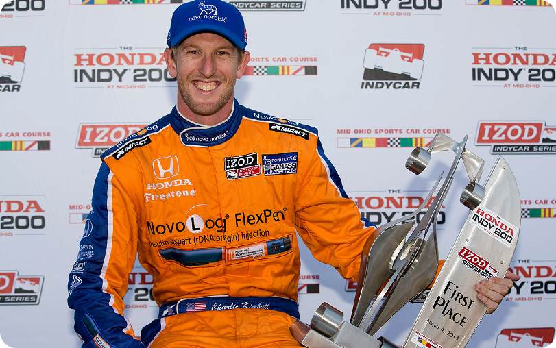 Charlie Kimball is a racecar driver who lives with type 1 diabetes. He is currently set to compete in what will be his tenth year in the IndyCar Series, driving the number four Novo Nordisk car and attempting to qualify for his 10th Indianapolis 500.